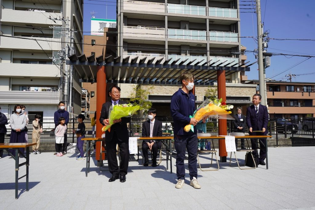 20230401溝之口みらい公園開園式 2023.04.01 晴天の元、溝之口みらい公園の開園式が執り行われました。 少年団から公園づくりに携わってくださった公園緑地課さま、前川造園土木さまに 花束をお渡しして感謝の気持ちをお伝えしました。 会長及び会計の任期満了に伴う立候補届及び選挙要項の告示 前の記事 【資源ごみステーション開錠しました】 次の記事
