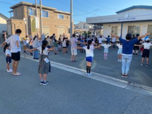 夏休みが始まりました。溝3町内会・少年団で夏休みのラジオ体操が行われました。期間は7/25~7/31(土日を除く)の5日間でしたが、全日、少年団員やお父さんお母さん小さい兄弟姉妹、町内会の方も参加して元気いっぱい体操していました。最終日は約70名程度の参加で大盛況に終わりました。後1ヶ月夏休みを有意義に過ごしましょう!